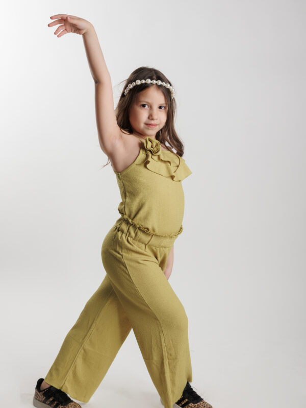 ΡΟΜΑΝΤΙΚΟ ΣΕΤΑΚΙ ΣΕ ΓΚΟΦΡΕ ΔΙΑΤΑΞΗ, ΤΙΡΑΝΤΑΚΙ ΜΕ ΔΙΠΛΟ ΒΟΛΑΝ ΚΑΙ ΛΕΠΤΟΜΕΡΙΑ ΑΠΟ ΛΟΥΛΟΥΔΙ , ΤΕΛΕΙΩΜΑΤΑ ΠΙΚΟ. ΠΑΝΤΕΛΟΝΑ ΜΕ ΦΑΡΔΥ ΖΩΝΑΡΙ ΛΑΣΤΙΧΟ ΚΑΙ ΤΕΛΕΙΩΜΑΤΑ ΠΙΚΟ.